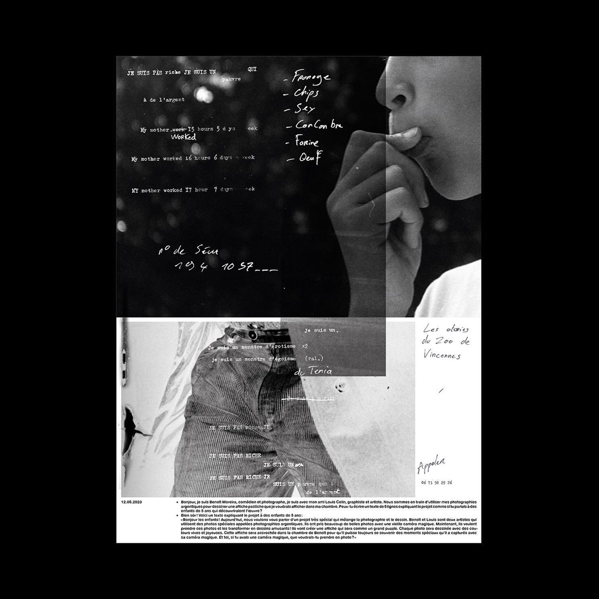 Poster displaying some of Benoît Moreira's poetic and photographic work.