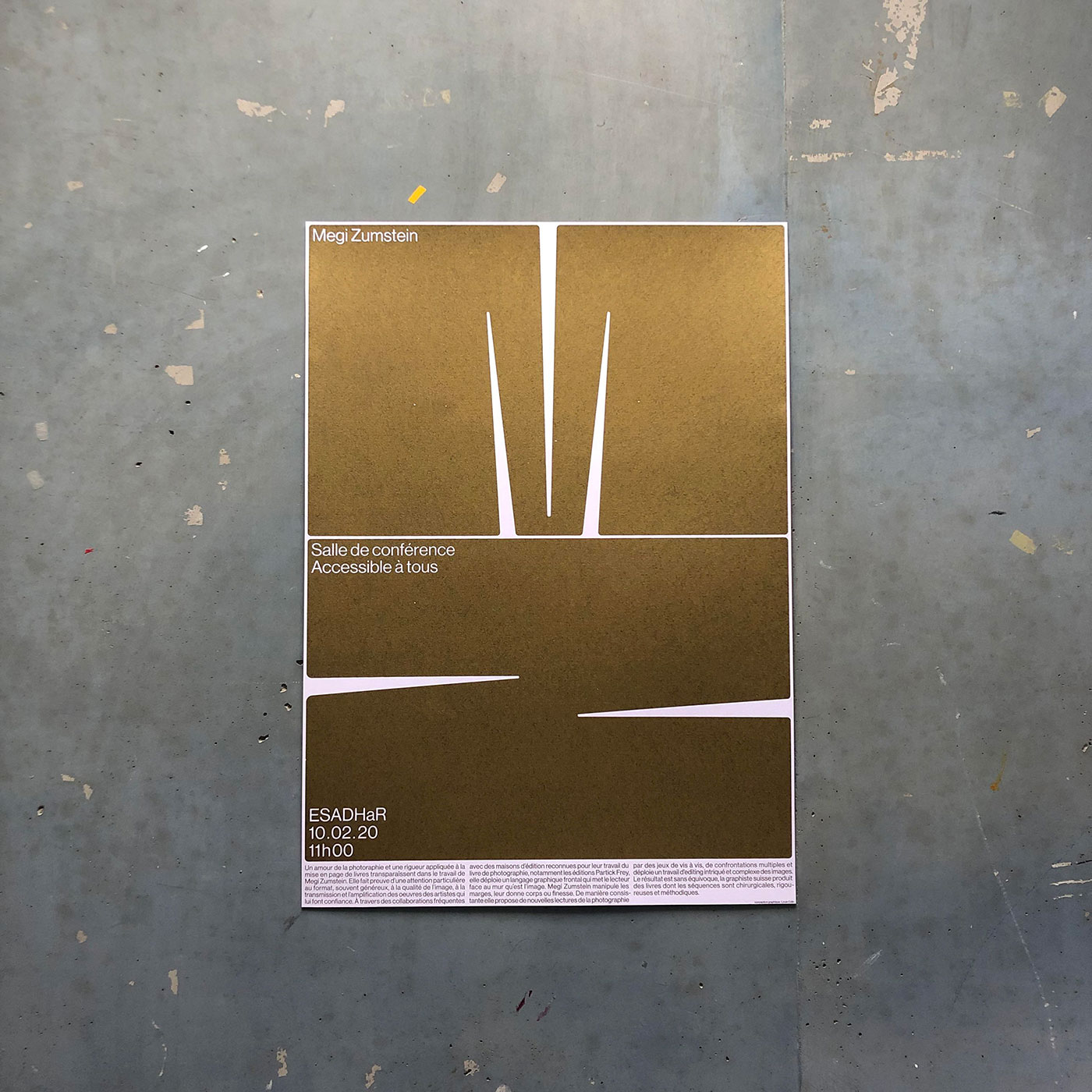 Poster I designed and printed at the occasion of Megi Zumstein's conference at ESADHaR Back in 2018.
