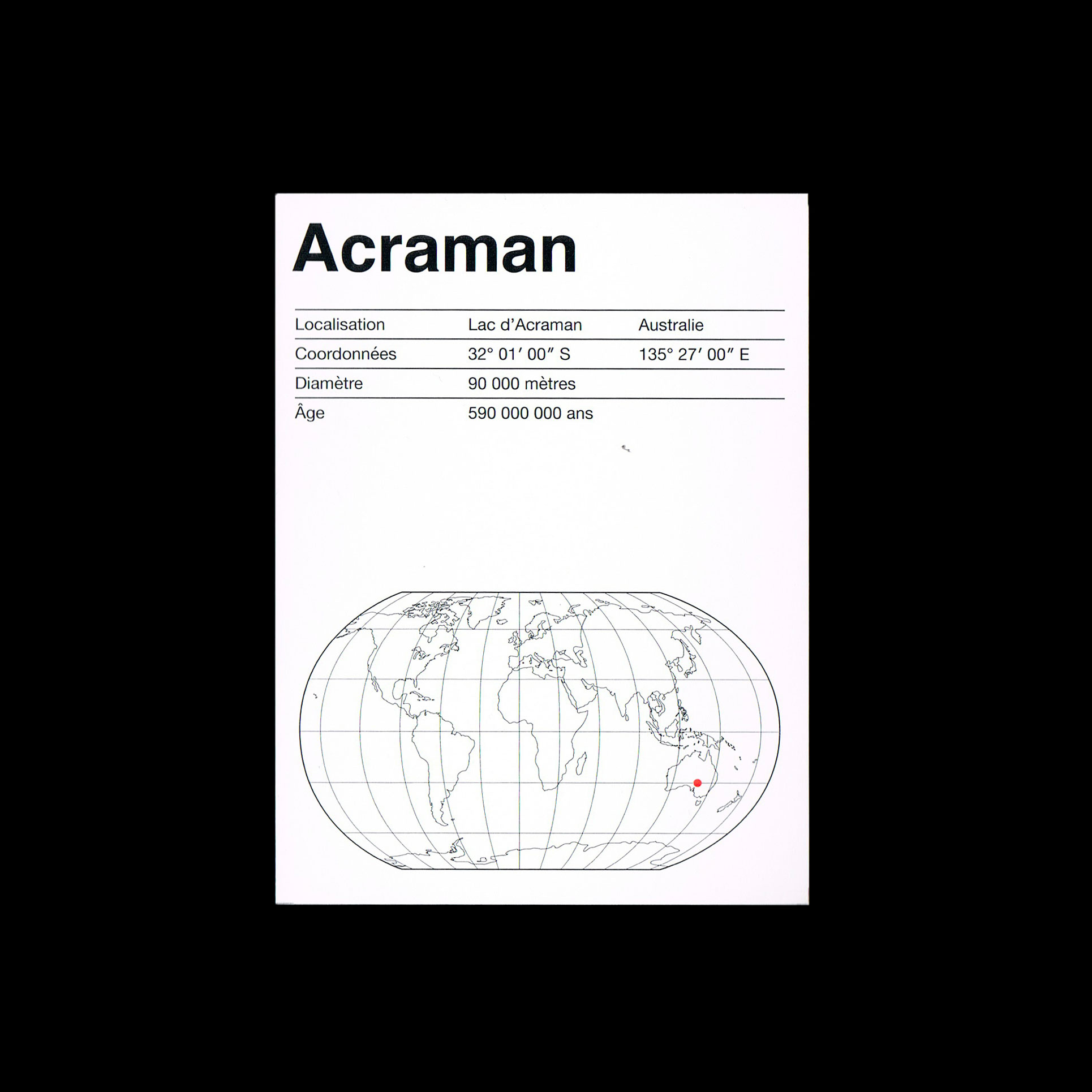 an index of all the times planet Earth was hit by a meteorite, designed as a cards game.