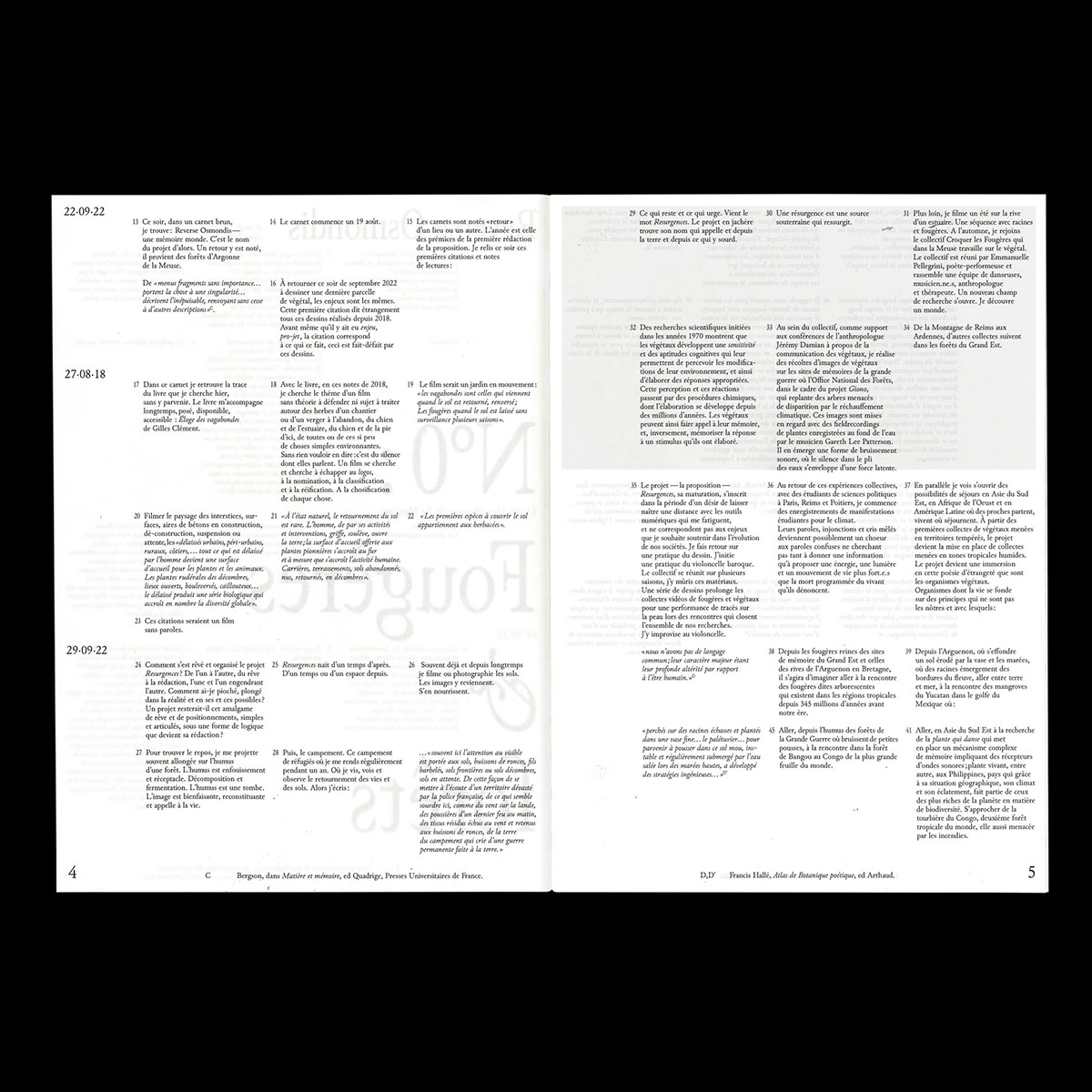Editorial design for Céline Pierre's project Résurgences.
